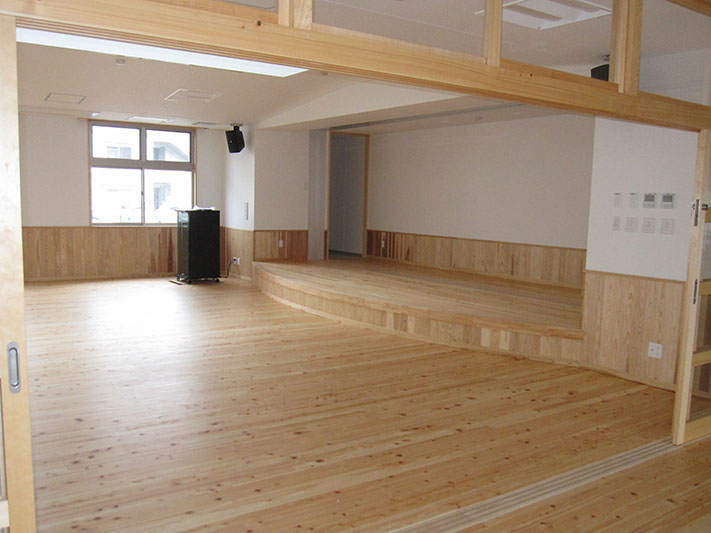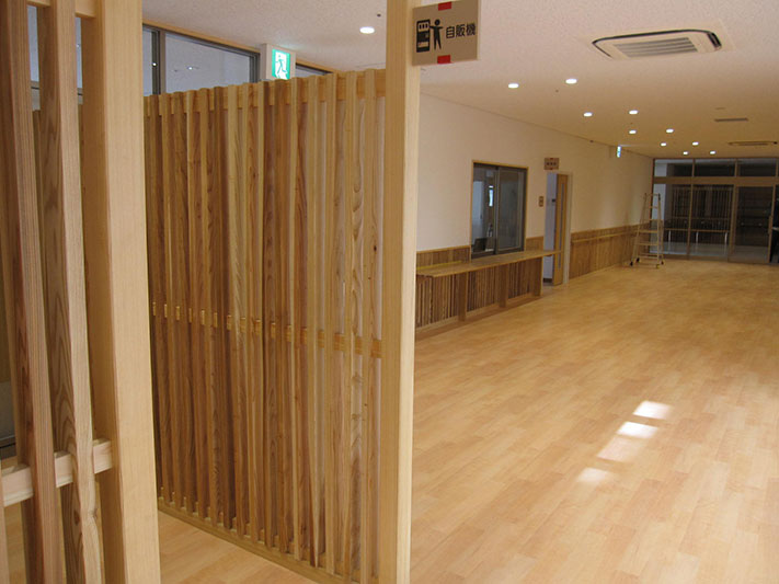 公共施設等の建物での木工事を主体に行っており、特に木材の品質管理・施工体制には絶対の自信をもっています。